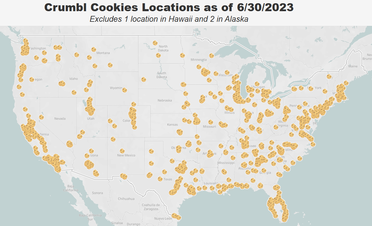 Early in their growth trajectory, Crumbl opened closer to their home base in Utah and nearby western states.