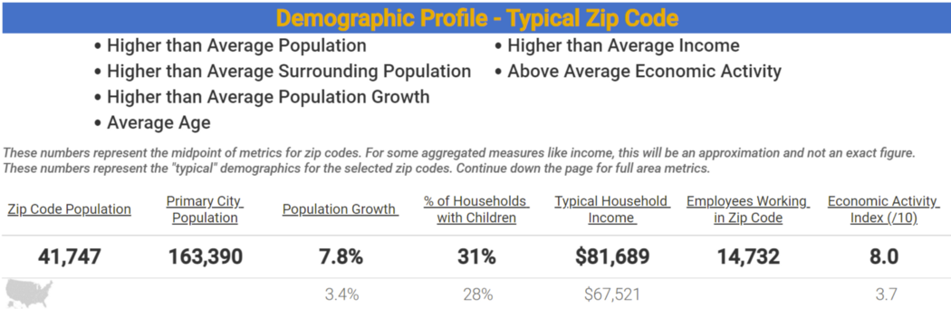 Now, imagine you’ve worked with a commercial real estate broker after selecting certain zip codes / cities from the above prioritization. They’ve presented you with potential sites and you need that last bit of conviction before moving forward.