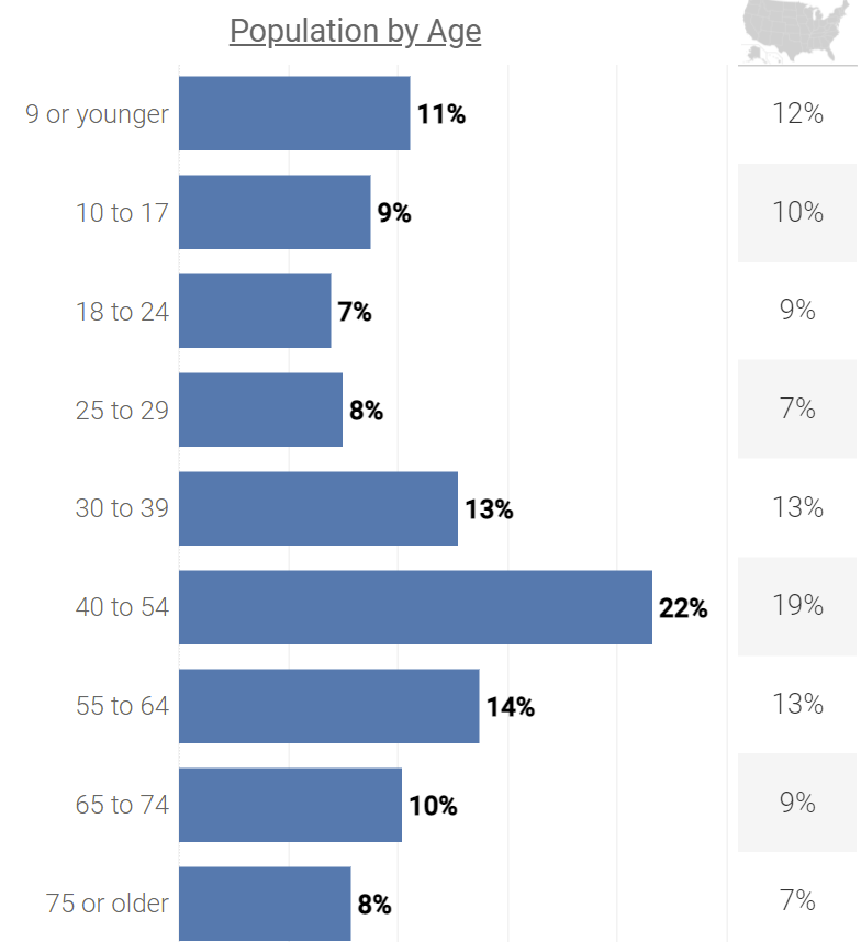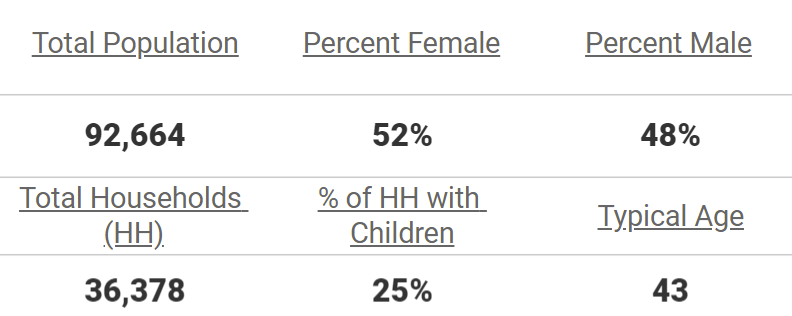 Now that we’ve identified our target market demographics, we might ask ourselves: Where are the areas that fit this demographic profile? Which counties, cities, or zip codes in our target states have higher population size & income, high growth, high employment, and high economic activity in suburban-urban environments?