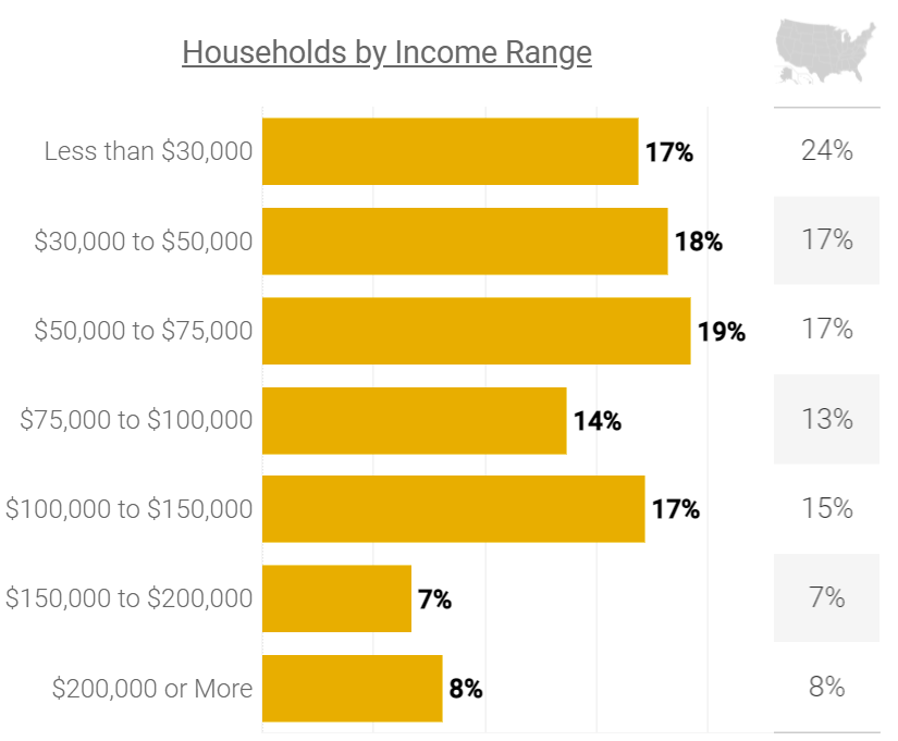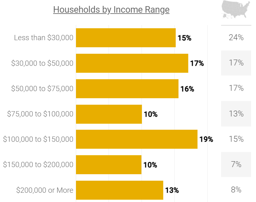 Population Size and Income: This type of gym is typically a premium offering compared to, for example, a Planet Fitness. We need sufficient population size to generate a customer base, and a sufficient income level to not balk at $100+ per month for membership.