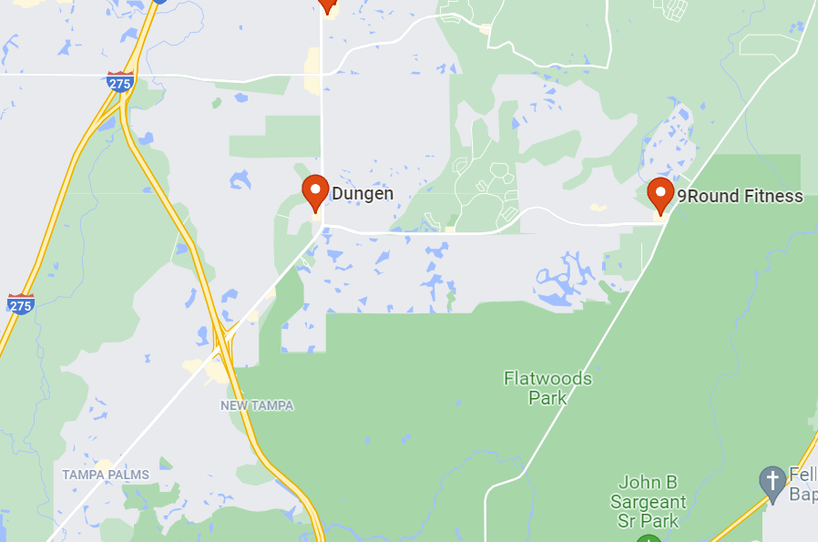 In our last zip code, 33647, we see another 9Round and a business called Dungen, which has no reviews and presumably is either not in business or is a very niche competitor.